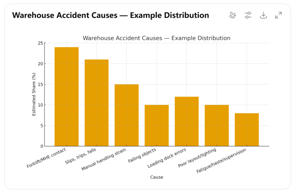 Q1: What is a warehouse accident? A warehouse accident means any unplanned event on site that causes injury, illness, damage, or service loss. Near-miss events still feed learning and should be logged with time, place, people, and media for trend work rooted in warehouse accident causes.